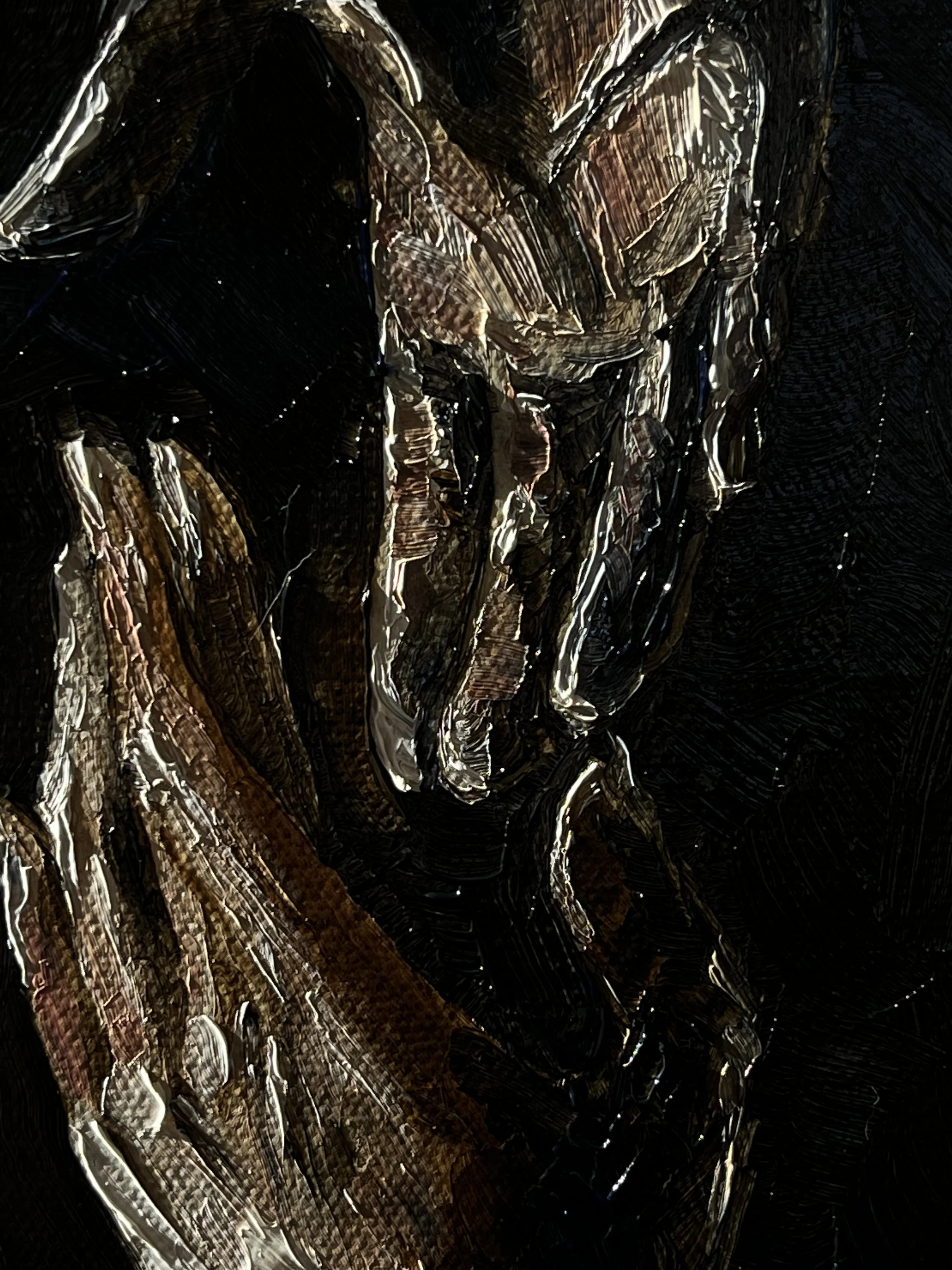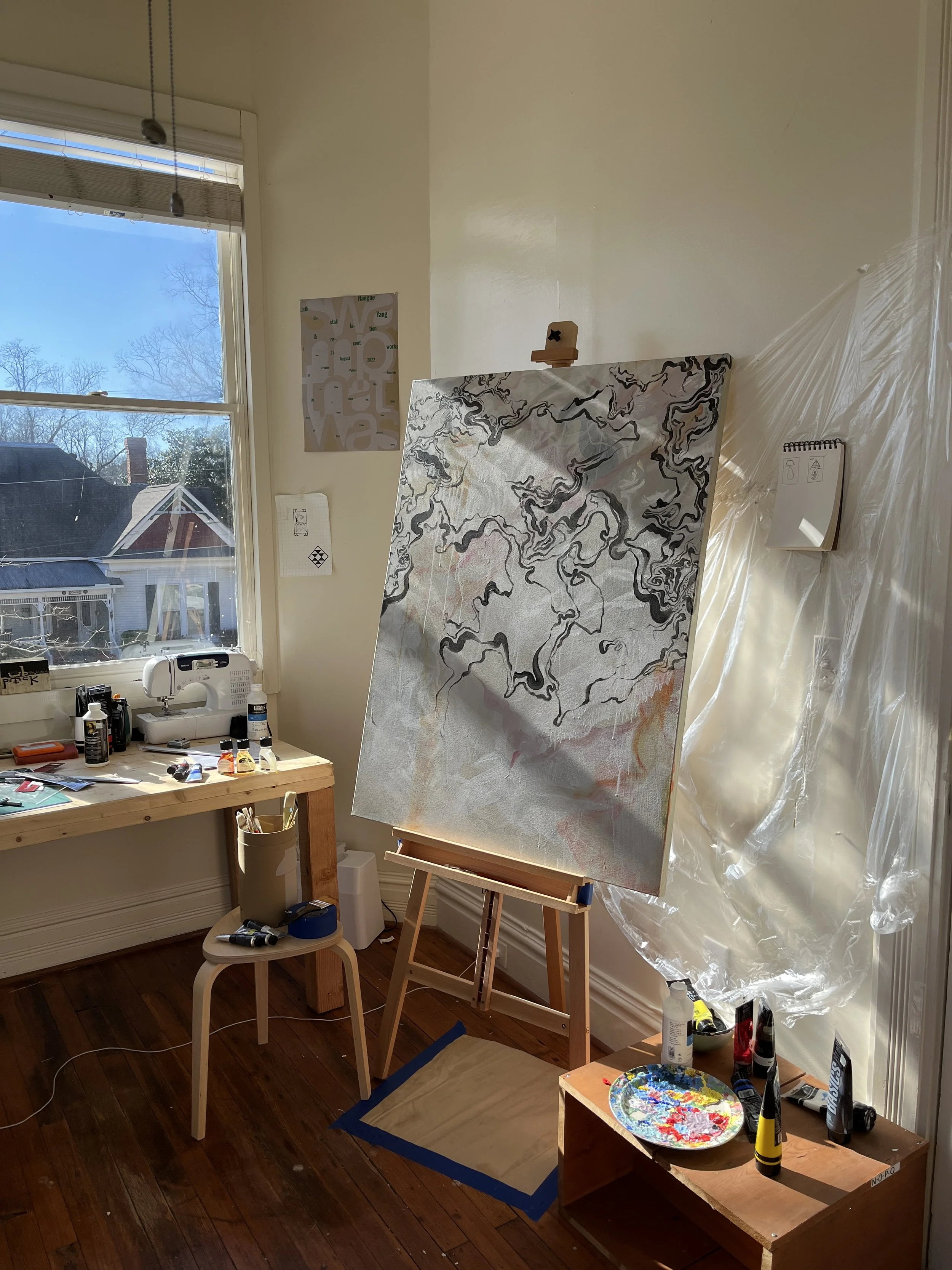 This painting is one that has taken years to concept out. It is a confluence of many dreams I’ve had and a representation of the hold they have on me. I think the unconscious mind is a valuable place where a version of myself exists outside of self critique or rational demands. The narratives I participate in while dreaming are my most creative memories. I thought it was time they joined the conscious world too.
