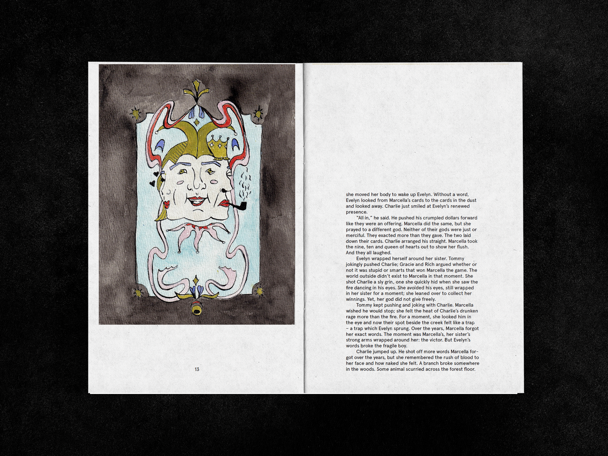 This project is a multi-page, multi-illustration piece with front and back cover art as well as individual page art. The book will be thoughtfully layed out and designed with the story in mind. I partnered up with a talented writer friend of mine, so this is an original story that will contribute to both our portfolios. Two birds! One stone!