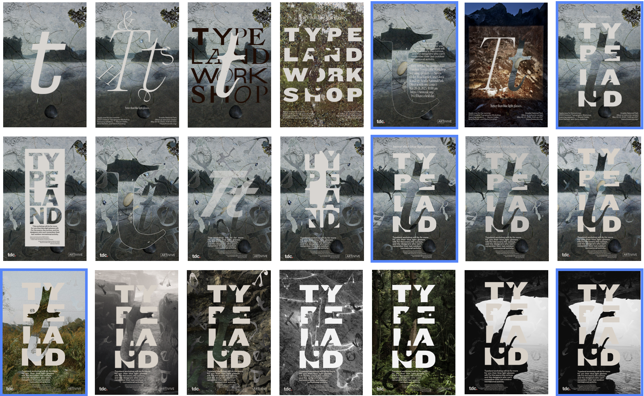 The charge of this project is to design a poster with a motion element that will appeal to new and seasoned type lovers alike and encourage viewers to apply to the program. The client needs a poster that will reflect the unique nature of this event. This is not another exhausting and verbose seminar about type (though that can be fun too). This is a design focused getaway about reconnecting with nature and design simultaneously. This is about re-sparking that child-like wonder towards design. This is about discovery.